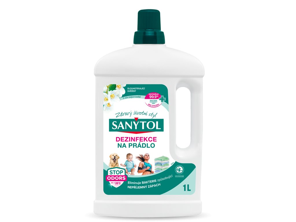 Sanytol-desinfekce na prádlo spolehlivě zahubí 99,9 % bakterií, virů (lidský koronavirus 229 E, virus chřipky A H1N1) a plísní (candida albicans). Pere a dezinfikuje již při 20 °C a to všechny textilie, bílé i barevné. Ideální pro sportovní oblečení, spodní prádlo, bytový textil (hadry na podlahu, utěrky, ručníky atd.), textil, který se dostává do kontaktu se zvířaty, ložní prádlo pacientů apod. Doporučuje se přidávat k praní v případech infekce nebo během epidemie (chřipka, střevní virózy…). Vhodný jak pro ruční praní, tak praní v pračce. Neodbarvuje. Bez chlóru. Zanechává příjemnou vůni bílých květů.