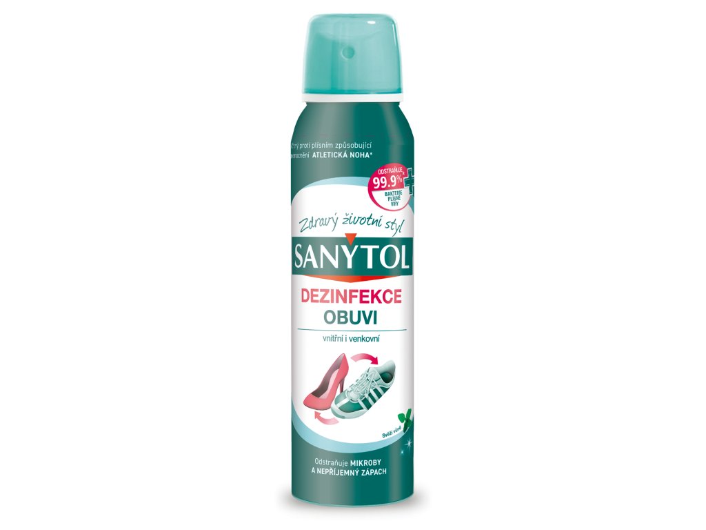 Sanytol desinfekční sprej do obuvi zahubí 99,9 % bakterií, virů a plísní, včetně mikrobů zodpovědných za mykózy, bradavice, atletickou nohu atd. Dezinfikuje všechny boty v rodině a odstraňuje z nich nepříjemné pachy. Nezanechává skvrny, ani zbytky mastnoty. Neodbarvuje. Jemná a svěží vůně.